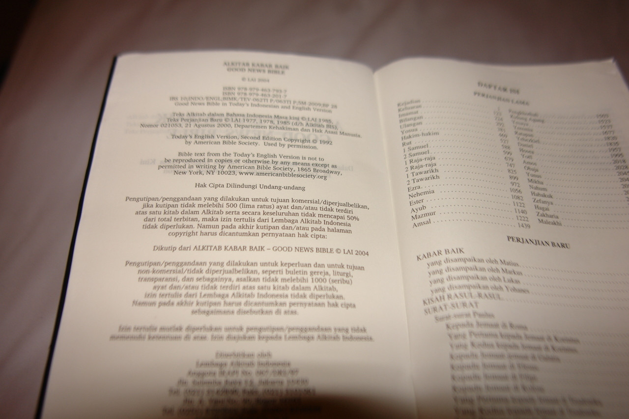 Indonesian English Bilingual Bible Alkitab Kabar Baik Good News Bible Blue Cover Modern Today S Indonesian And English 062ti Thumb Indexed Bibleinmylanguage